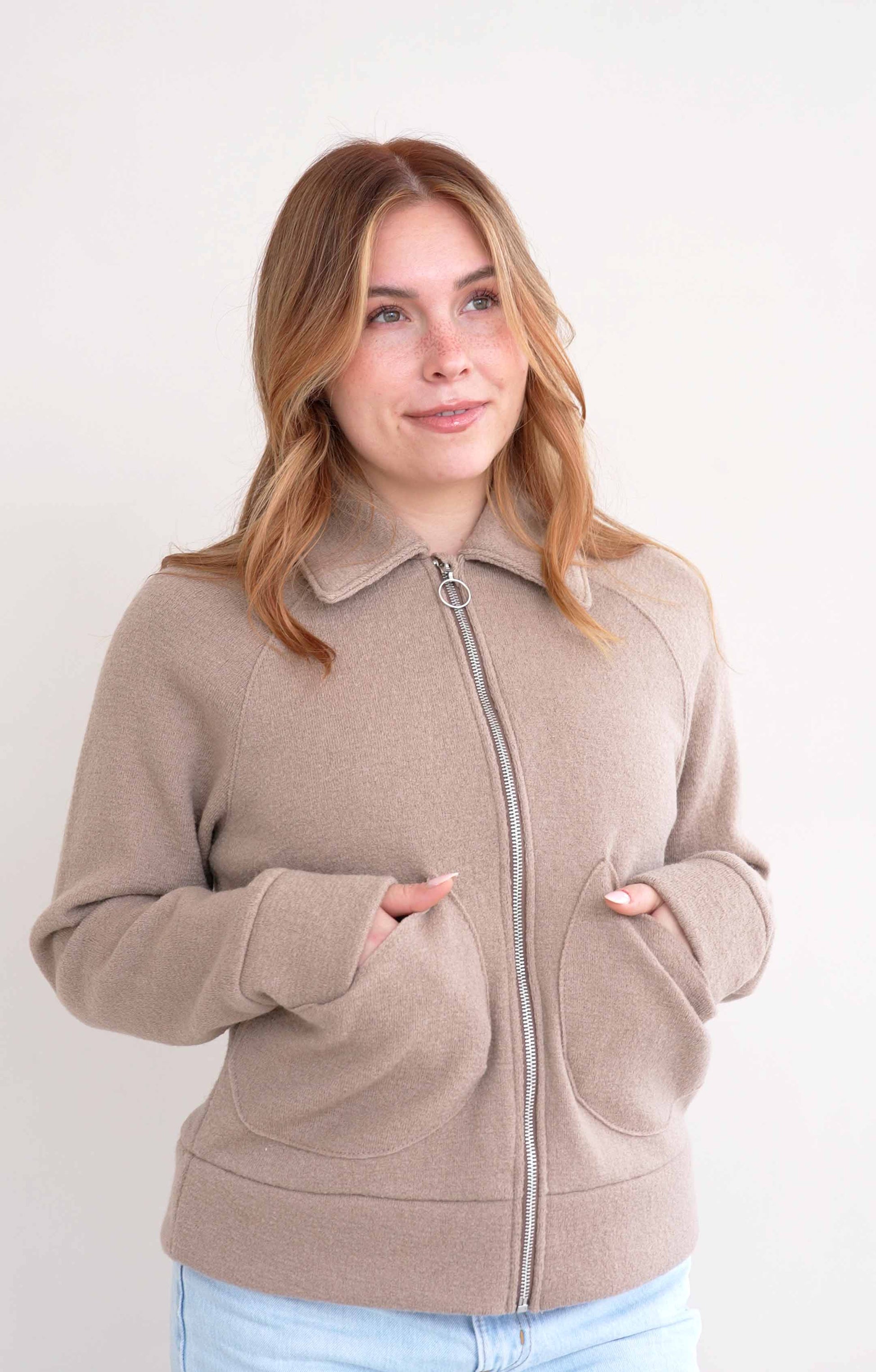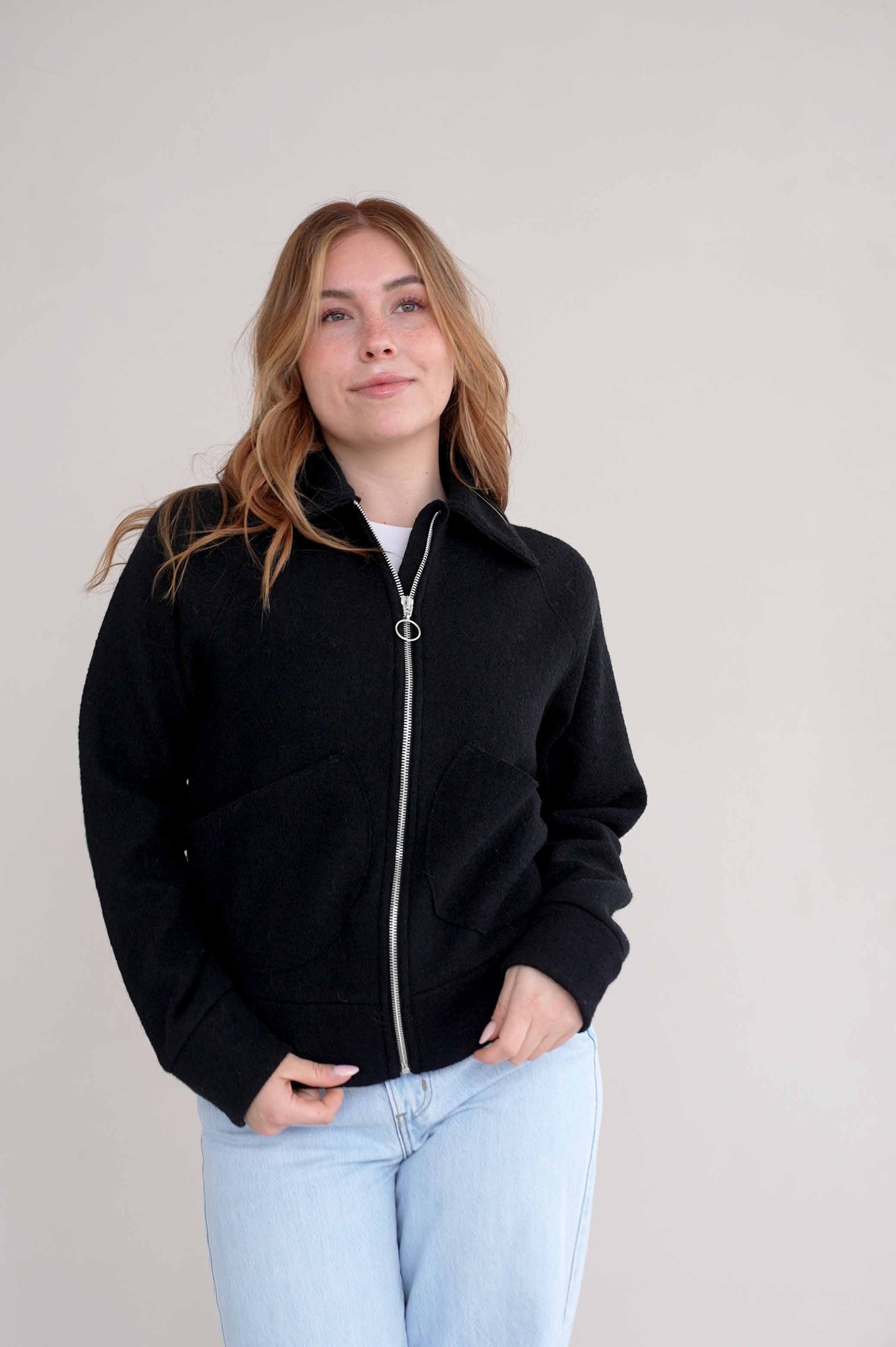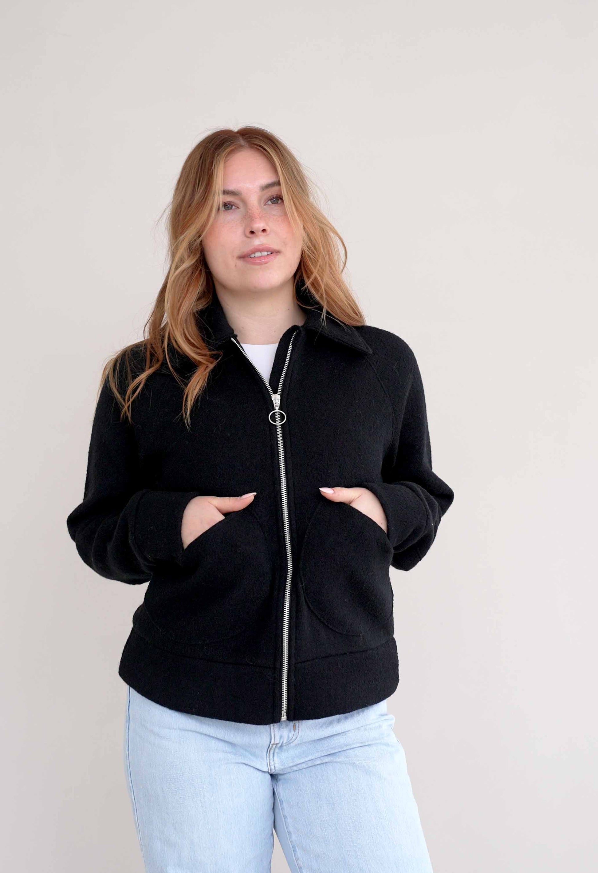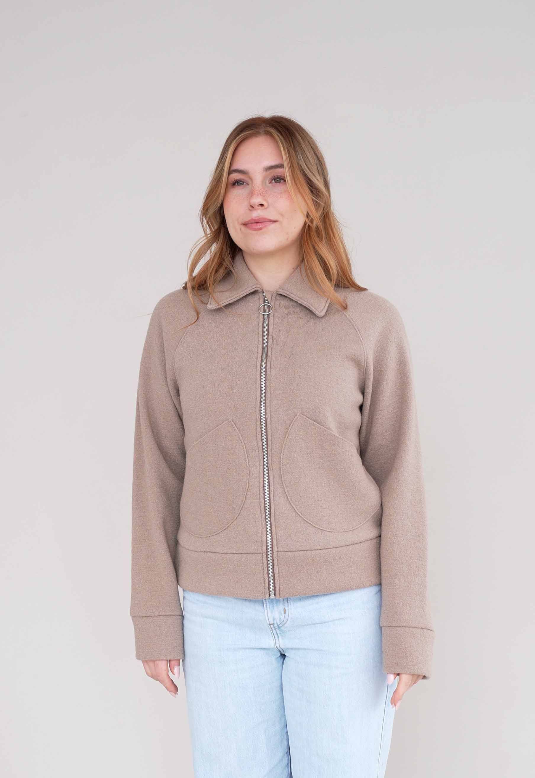 Diese Damenjacke aus feinem Walk – minimalistisch, natürlich, zeitlos.